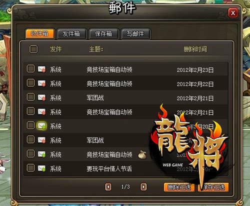 写信对于现在的高科技来说已经是很古老的事情了。现在我们都习惯了用邮箱写信,因为它又快又准时。没事的时候,可以利用邮箱多和自己的好朋友们沟通沟通。陪游龙将的邮箱也是可以用来写信给朋友、战友沟通的。玩家们可以通过邮箱跟其他的玩家们一起了解游戏的攻略、交朋友等等。